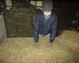 稲藁床の完成です。でも完成したからと言って直ぐには使いません。3〜5ヶ月間、積み上げて保管します。藁床を落ち着かせるんですね。。